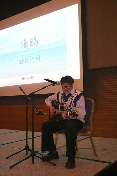 一首吉他彈唱《海鷗》,他的歌聲清澈悠揚(yáng),令人心曠神怡。